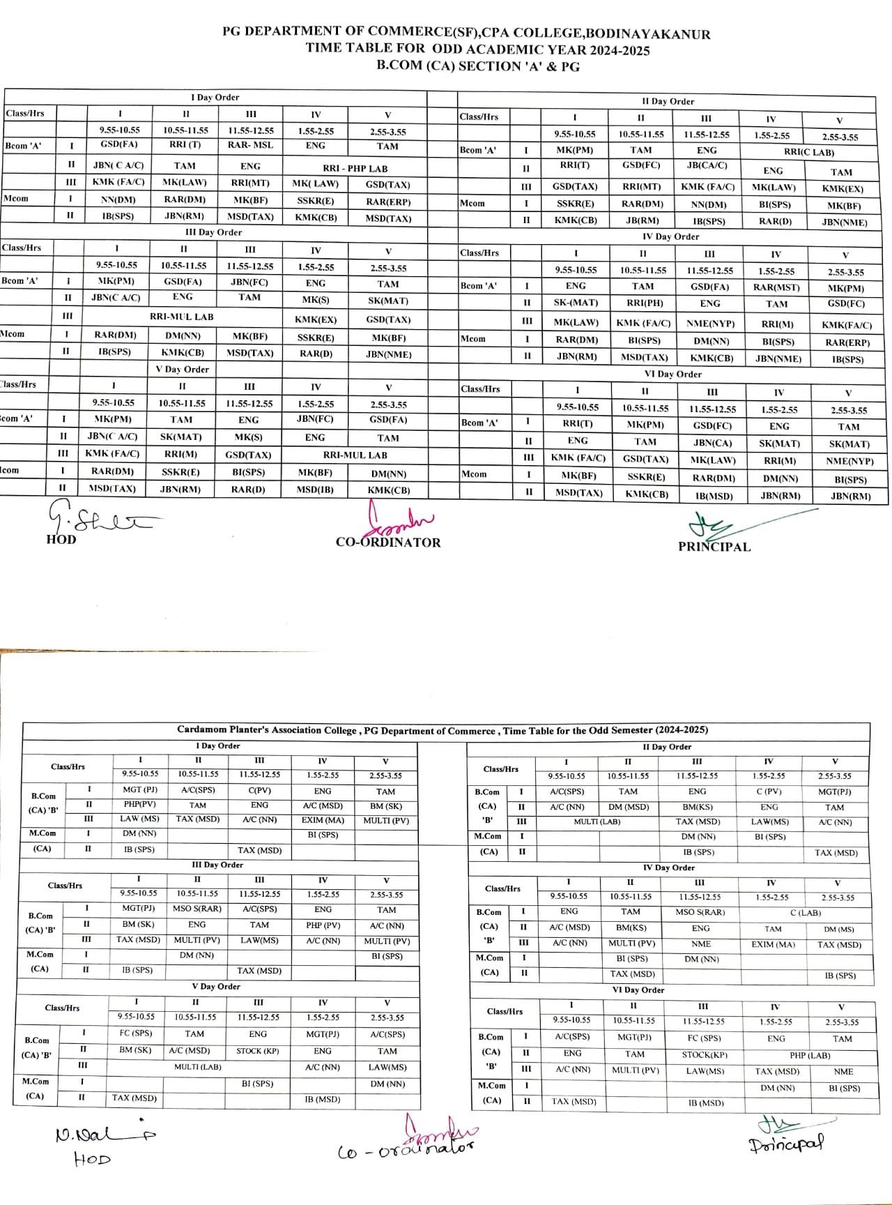 Timetable