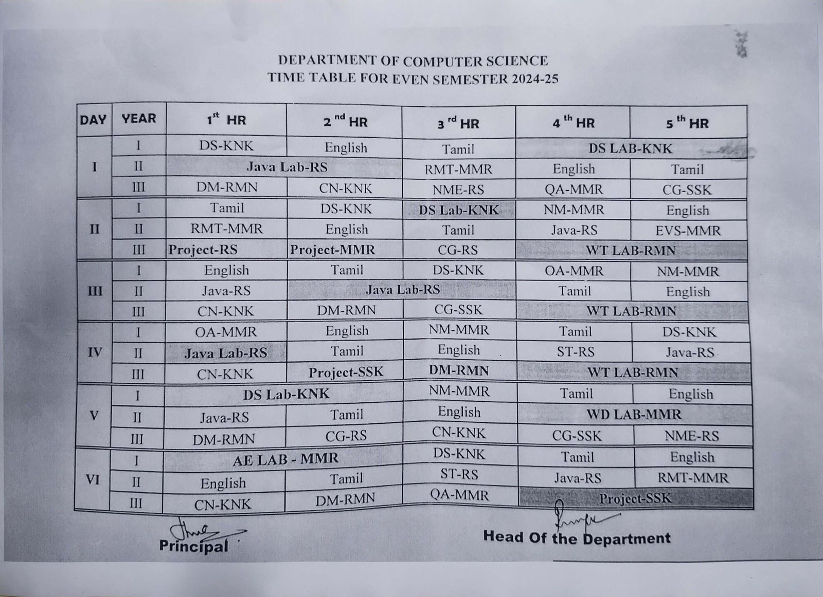 Timetable