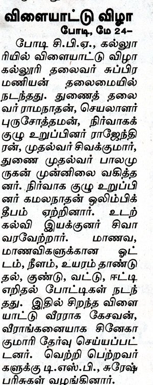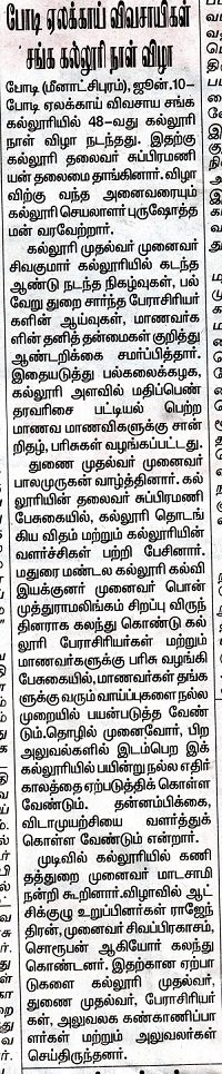 CPA College Library - News Paper Clips - CPA College Information - Only College run by Cardamom Farmers - Dinamalar Dinamalar