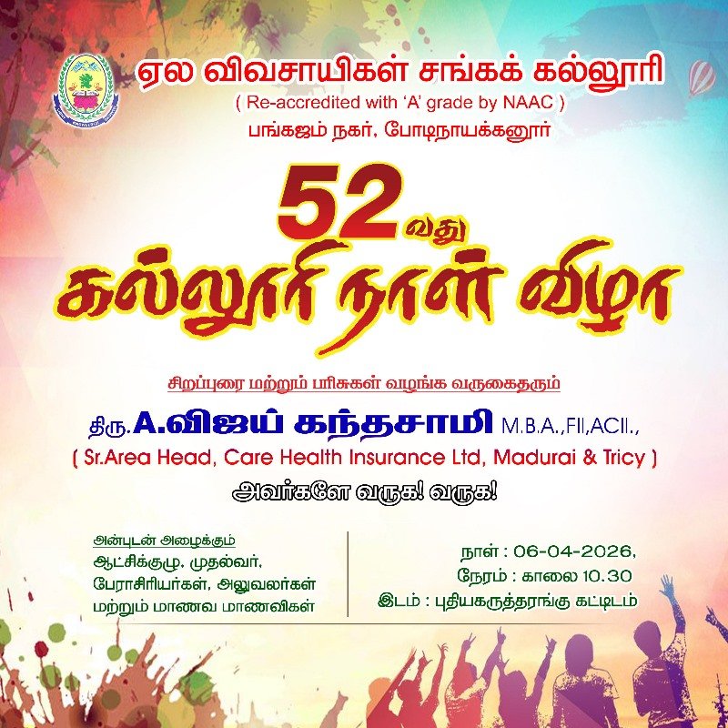 The Management, Principal, Faculty, Staff, and Students of Cardamom Planters' Association (C.P.A.) College cordially invite you to join us for our 52nd College Day Celebration.