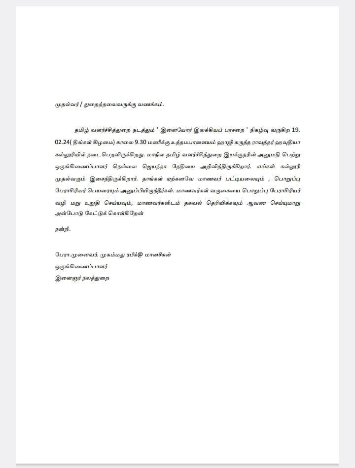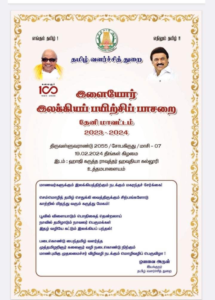 இளையோர் இலக்கியப் பாசறை தேனி மாவட்ட ஒருங்கிணைப்பாளர் அவர்களால் அனுப்பி வைக்கப்பட்ட அழைப்பாணை.