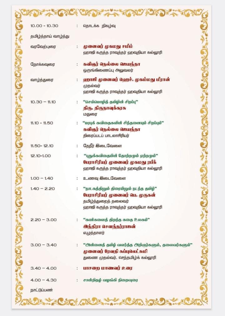 - Venue : Haji Karutharavuthar Howdhiya College, Uthamapalayam