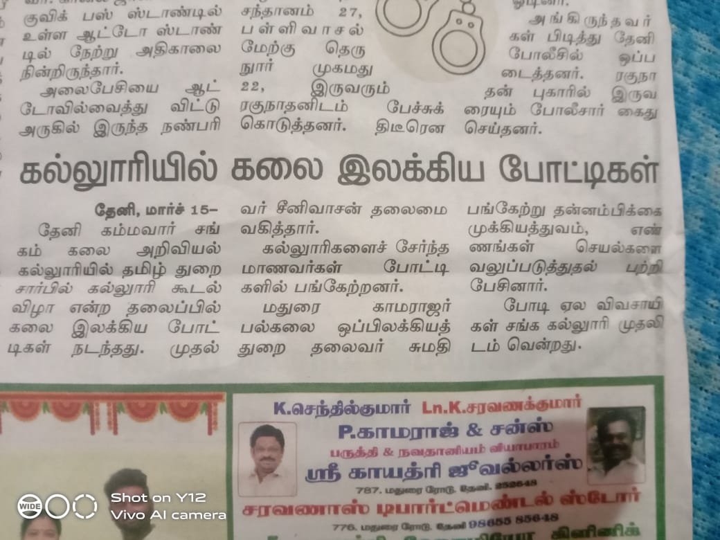 - Organised by : Department of Tamil, Theni Kammavar Sangam Art and Science College,