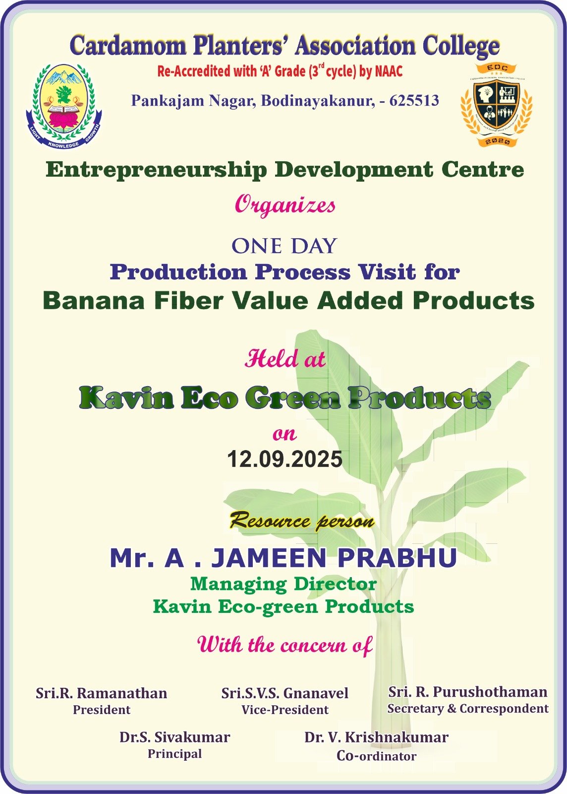 One Day Production Process Visit for "Banana Fiber Value Added Products"