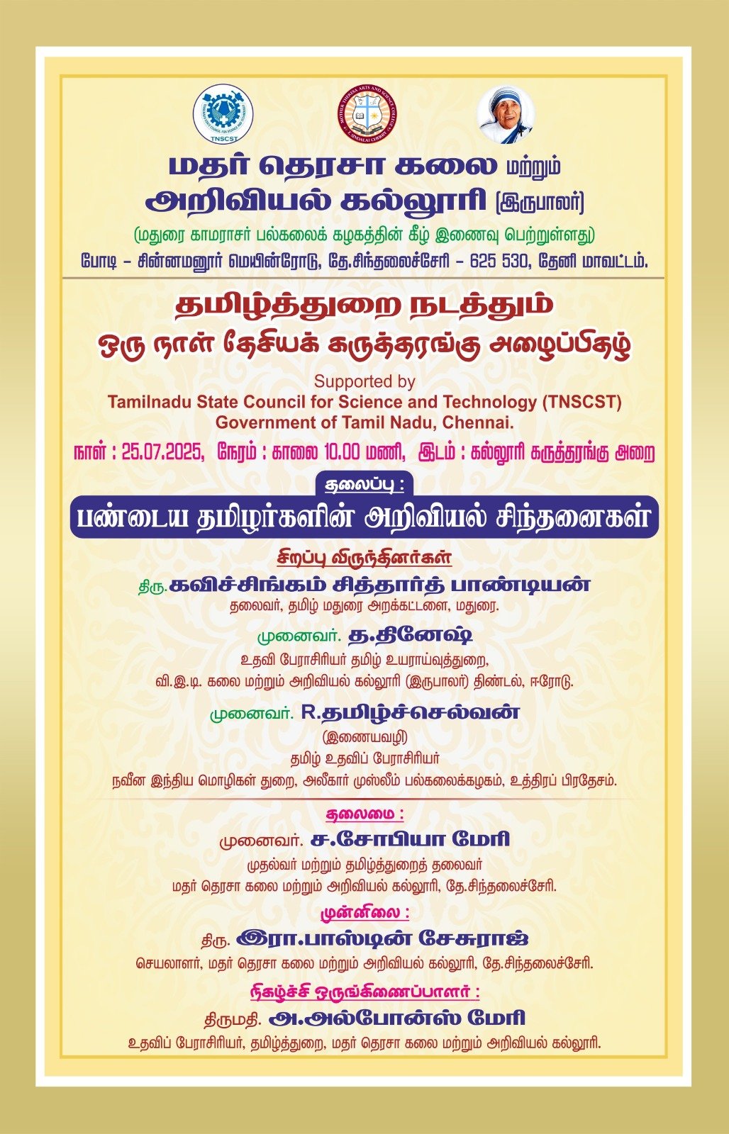 - Organised by : Department of Tamil, Mother Theresa Arts and Science College