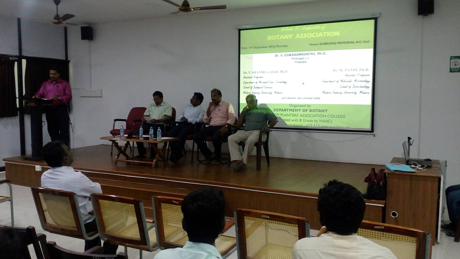 BOTANY ASSOCIATION-Seminar On 15th September 2016, Thursday At Subburaj Memorial A/C Hall