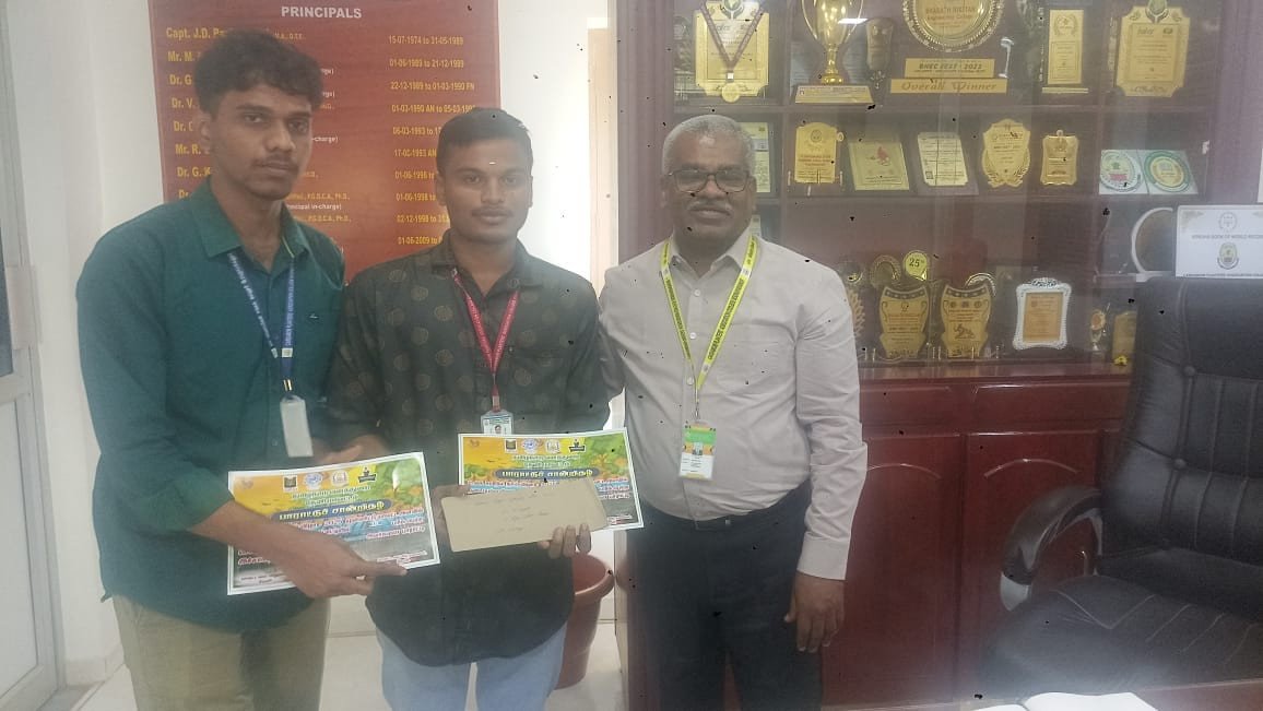 Their remarkable performance earned them a cash prize of ₹500 each and certificates of achievement, which were proudly presented by the District Collector, Thiru. Ranjeet Singh, I.A.S. This achievement highlights their dedication and intellect, bringing laurels to the institution.