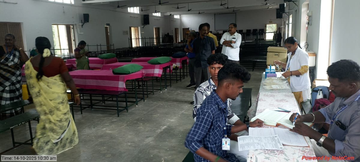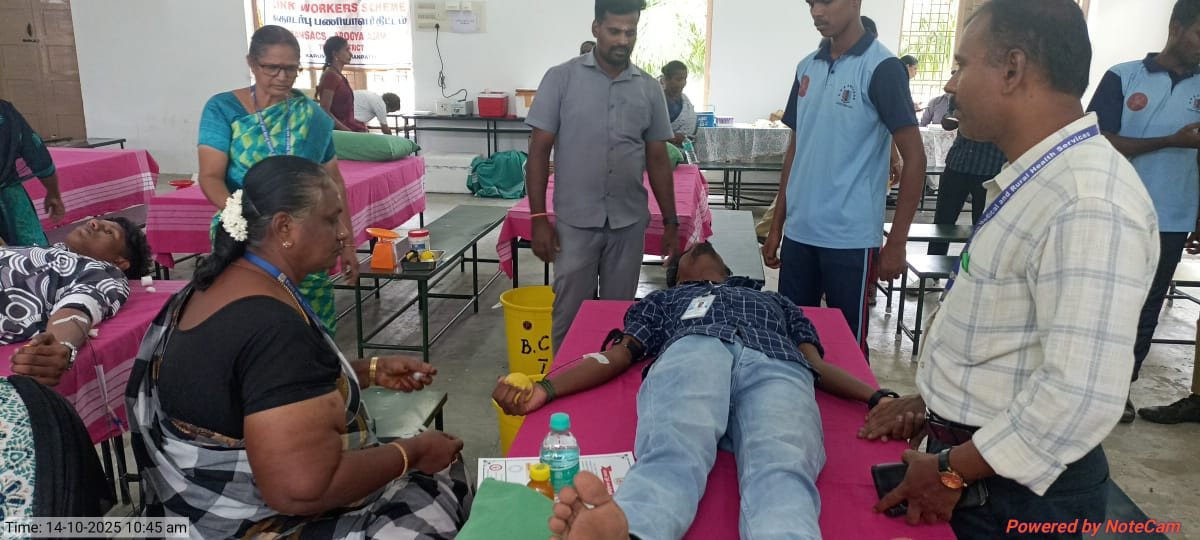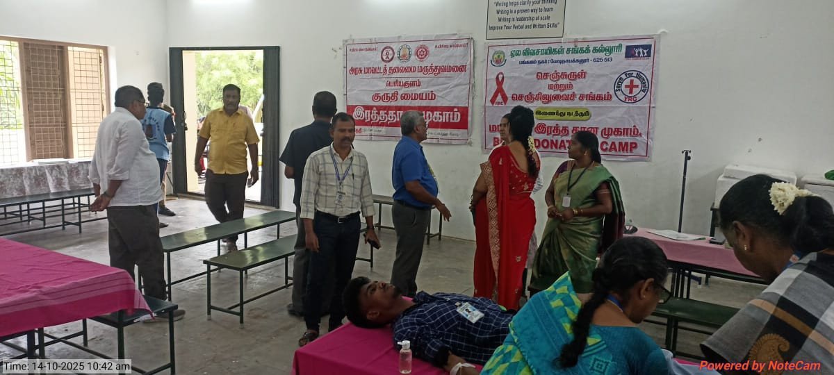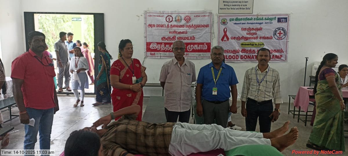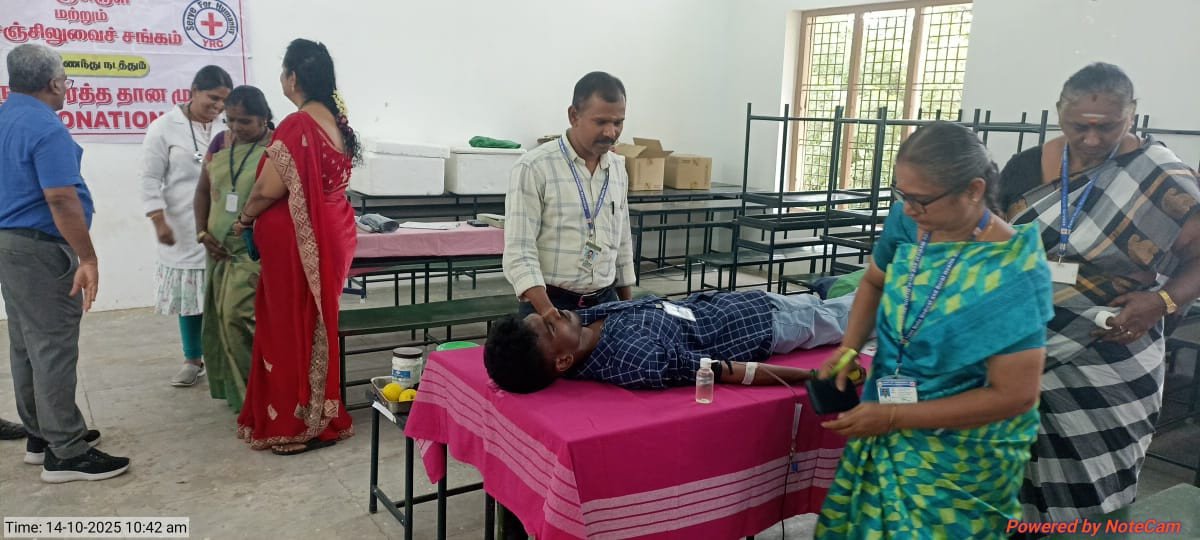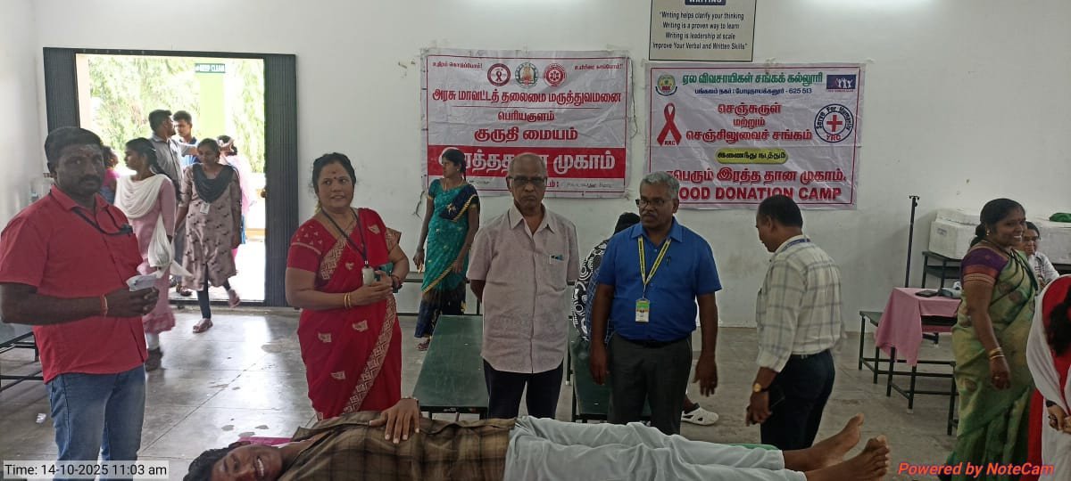 The Youth Red Cross (YRC) and Red Ribbon Club (RRC) of C.P.A. College jointly organized a Blood Donation and Blood Grouping Camp on 14th October 2025 in collaboration with the Government Hospitals of Bodinayakanur and Periyakulam. The camp aimed to promote the spirit of social responsibility and the importance of voluntary blood donation among students.