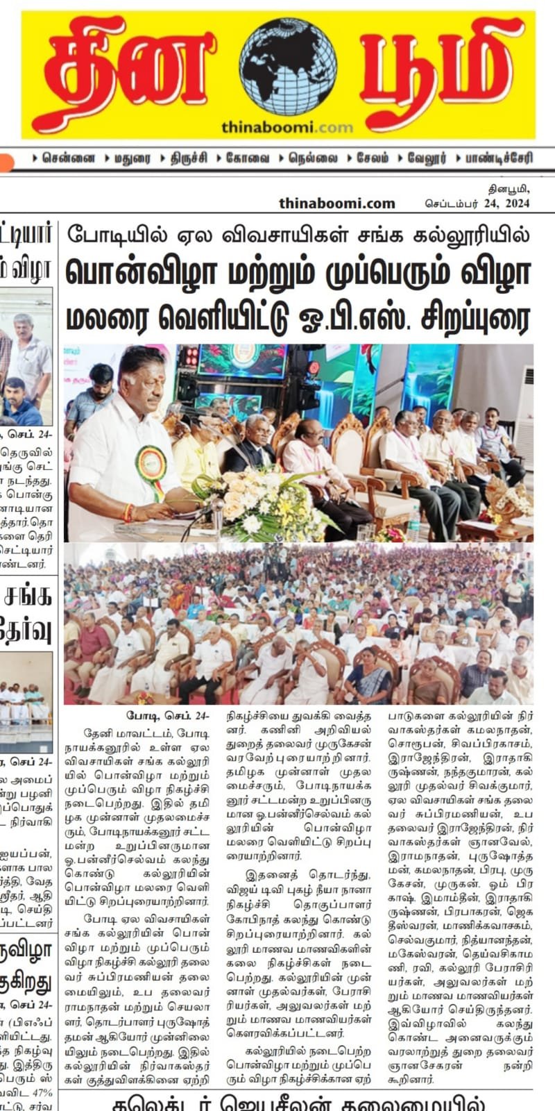 CPA College Library - News Paper Clips - CPA College Golden Jubilee Magazine Release - Thinaboomi Thinaboomi 23/09/2024