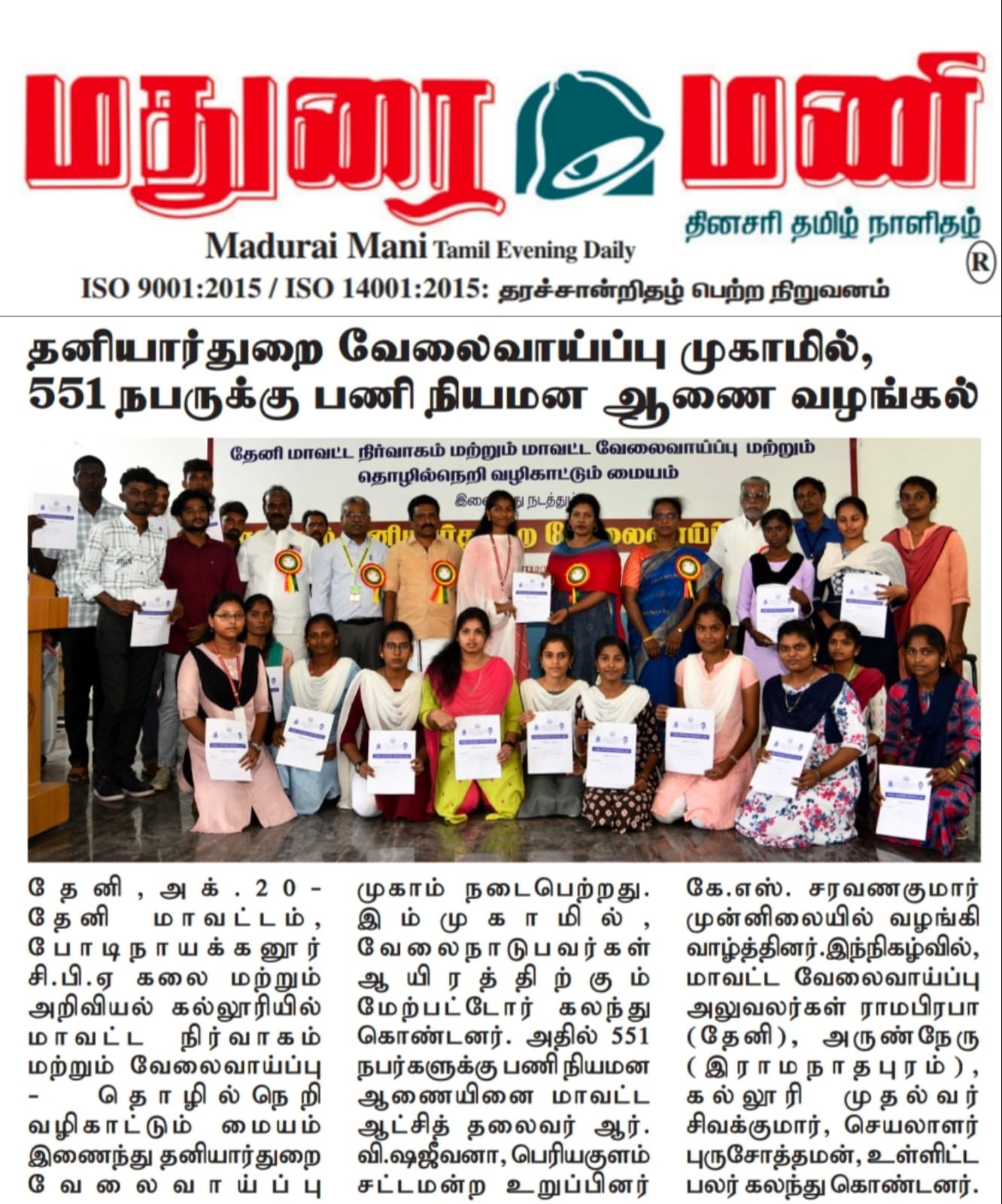 CPA College Library - News Paper Clips - Grand Private Sector Placement Drive 2024 - Madurai Mani Madurai Mani 19/10/2024