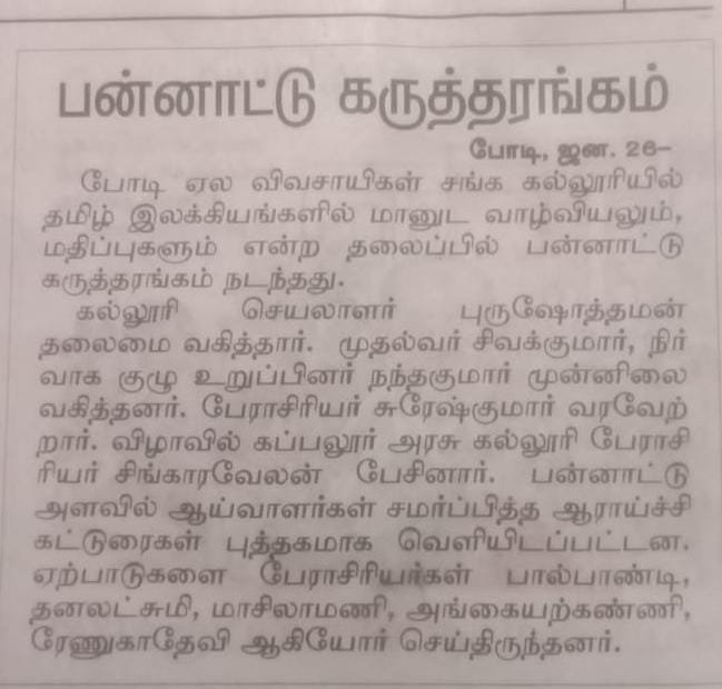 CPA College Library - News Paper Clips - Conference on "Human Ethics and Values in Tamil Literature தமிழிலக்கியங்களில் மானுட வாழ்வியலும் மதிப்புகளும்" - Dinamalar Dinamalar 24/01/2025