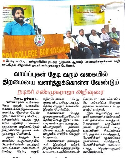 CPA College Library - News Paper Clips - Students Induction Programme - Dinamalar Dinamalar 30/06/2025 - 04/07/2025