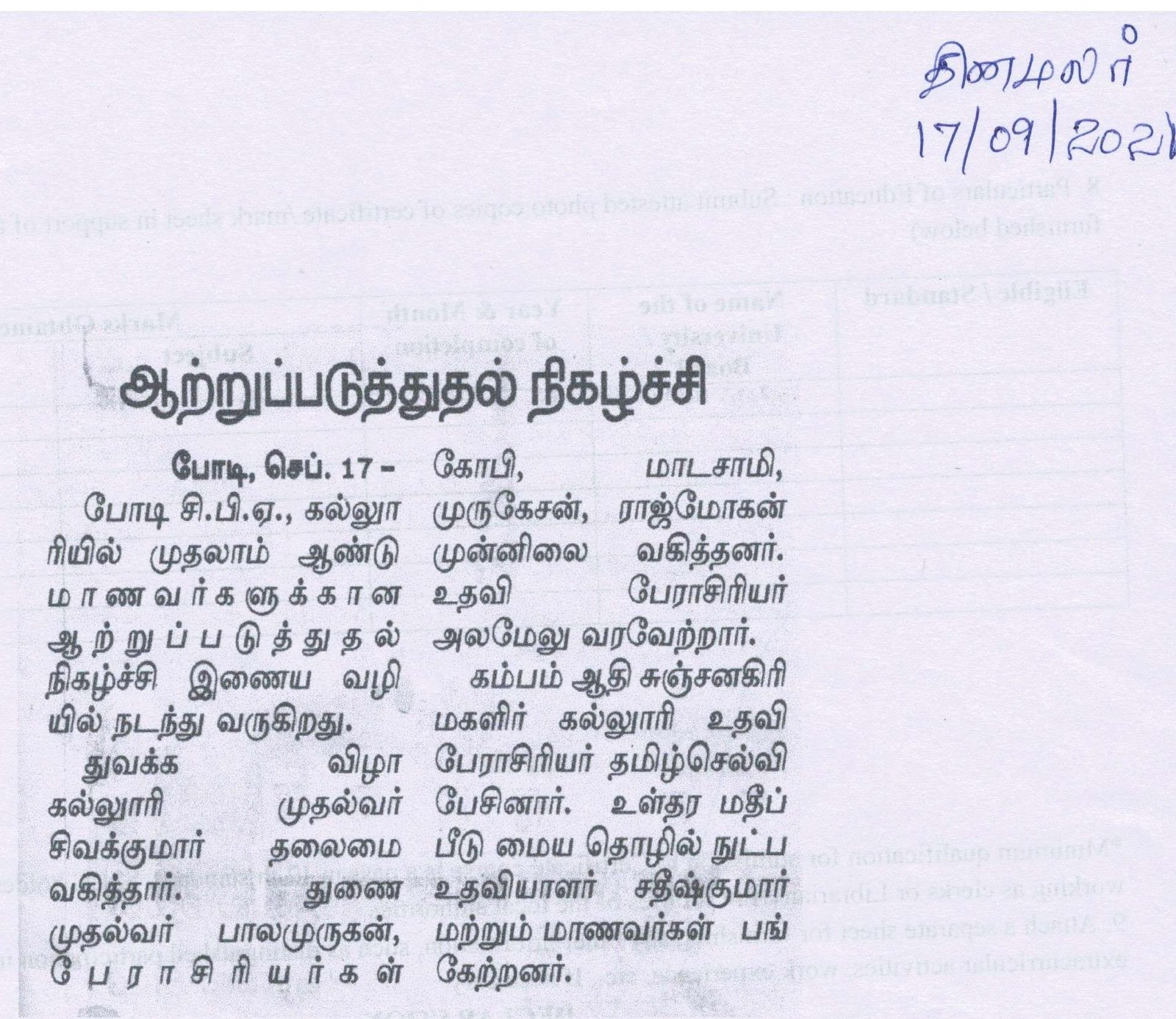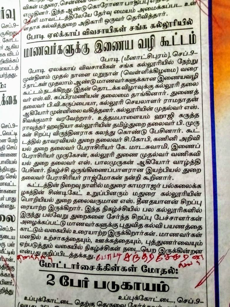 போடி கல்லூரியில் பாரதி உலா நிகழ்ச்சி