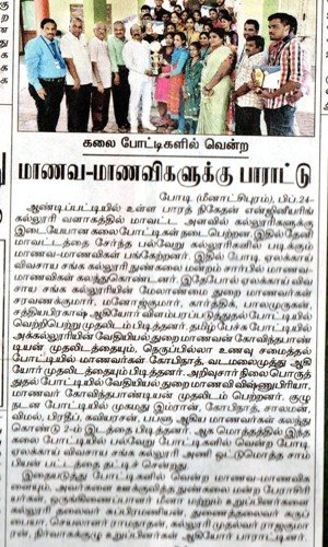 கலை போட்டிகளில் வென்ற மாணவ மாணவிகளுக்கு பாராட்டு