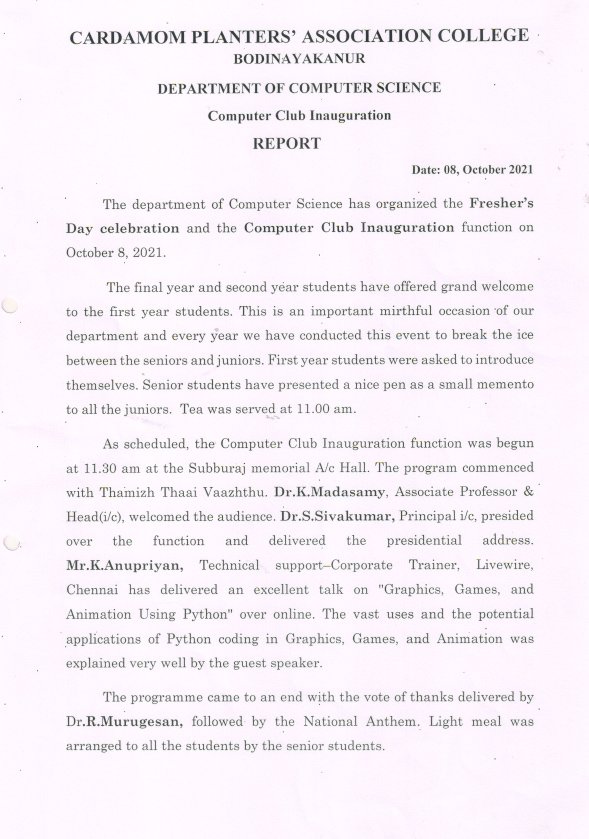 Computer Club Inauguration and Webinar on Graphics, Games and Animation Using Python