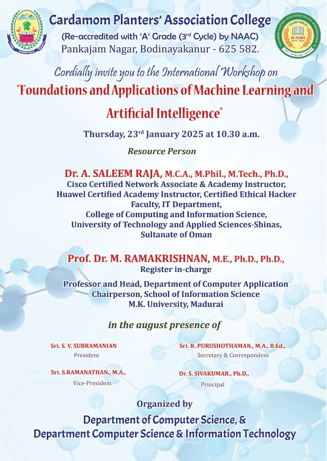 - Venue : CARDAMOM PLANTERS' ASSOCIATION COLLEGE