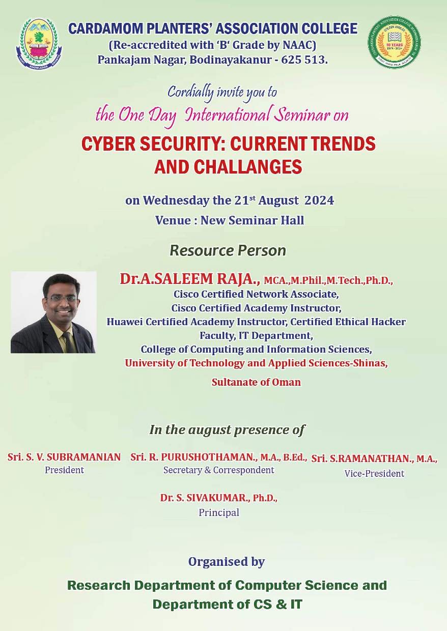 One Day International Seminar on Cyber Security, Current Trends and Challenges