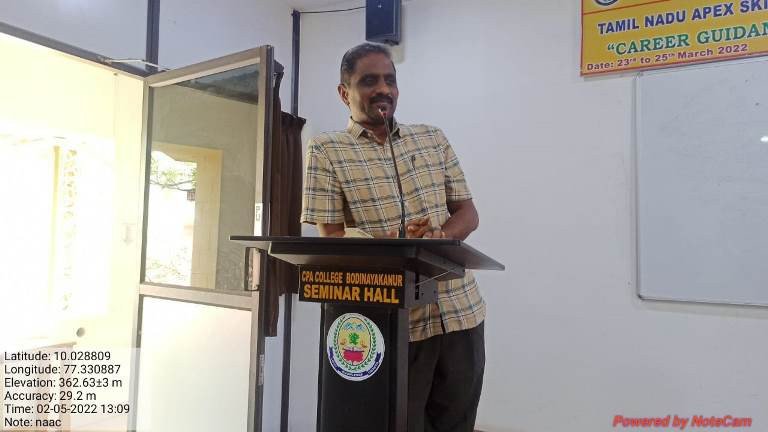 The seminar on the "Process and Preparation of Accreditation and Assessment of NAAC – Discussion" was held on May 2, 2022, organized by the Internal Quality Assurance Cell (IQAC) at C.P.A. College, Bodinayakanur. The event aimed to enlighten faculty members on the accreditation and assessment procedures of the National Assessment and Accreditation Council (NAAC). The seminar witnessed active participation from 95 faculty members.