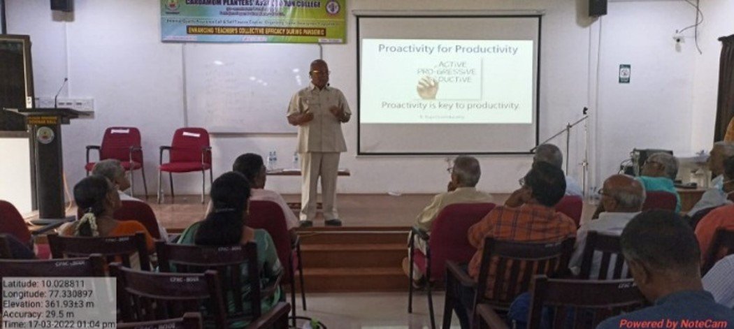 Teacher Development Programme on “Enhancing Teacher’s Collective Efficacy during Pandemic” was successfully conducted in the Cardamom Planters’ Association College, on 17th March 2022 by Internal Quality Assurance Cell (IQAC) & Self Finance Courses (SFC). The inaugural ceremony of the program began with the prayer song.