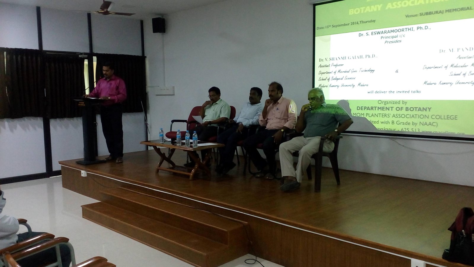 BOTANY ASSOCIATION-Seminar On 15th September 2016, Thursday At Subburaj Memorial A/C Hall