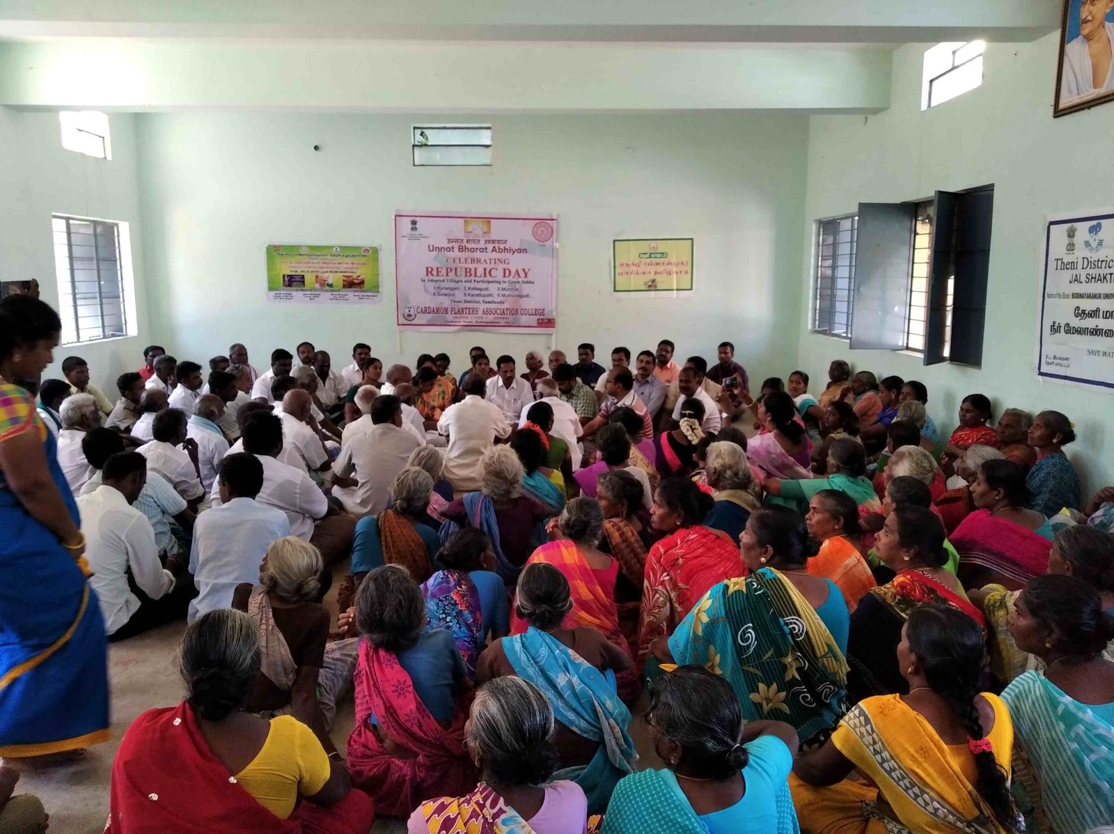 Grama saba 2020 participated in TWO places such as Anaikaripatti Panachayat (Adopted villages: Munthal & Solaiyur) and Kottagudi Panchayat (Kurangani and Kottagudi) PDF file as attachment for your reference. The following were discussed and passed as resolutions such as Rain water harvesting, cleanliness maintenance and health & hygienic, income generating agro technologies, awareness programme etc. 30 Students and 08 Faculty were involved