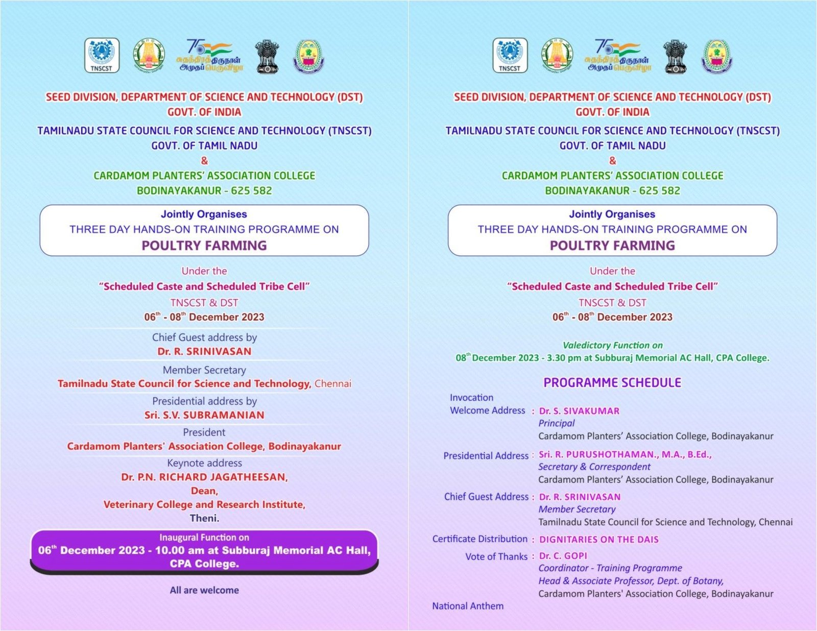 2023-24 TNSCST: SCST-Poultry Farming 2023 Phase I