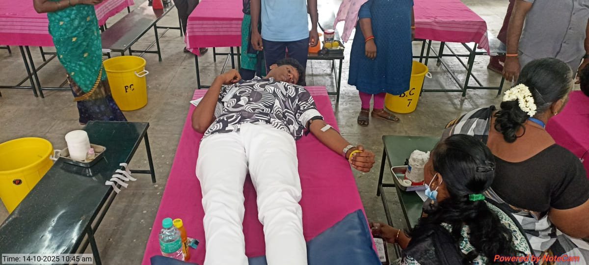 The Youth Red Cross (YRC) and Red Ribbon Club (RRC) of C.P.A. College jointly organized a Blood Donation and Blood Grouping Camp on 14th October 2025 in collaboration with the Government Hospitals of Bodinayakanur and Periyakulam. The camp aimed to promote the spirit of social responsibility and the importance of voluntary blood donation among students.