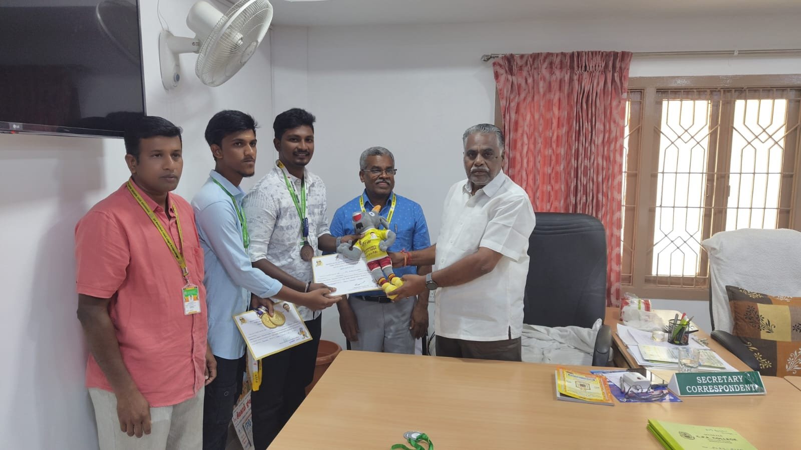 We are proud to announce that M. Ajaykumar, a student of PGDCA (2024-2025), has secured the Third Prize in the CM Trophy State Level Badminton Tournament held on 14th October 2024 in Chennai. As a recognition of his outstanding performance, he was awarded a cash prize of ₹50,000 by the Tamil Nadu Government. This achievement highlights his exceptional talent and dedication to sports. We congratulate M. Ajaykumar on his success and wish him all the best in his future sporting endeavors.
